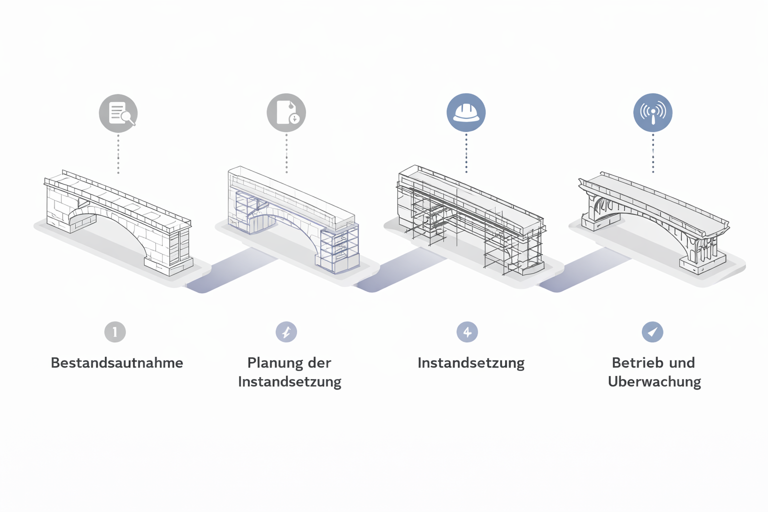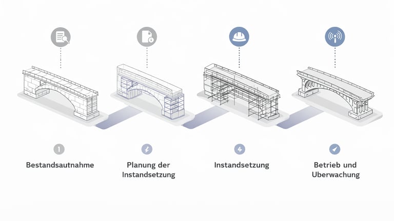 Brücken sind zentrale Elemente der Verkehrsinfrastruktur und erfordern eine fachgerechte Instandsetzung. MAVRIC Hochbau führt Brückensanierungen mit hoher technischer Präzision und Respekt vor der bestehenden Bausubstanz aus. Durch den Einsatz bewährter Verfahren und moderner Bauabläufe sichern wir Tragfähigkeit, Dauerhaftigkeit und Verkehrssicherheit. Die Arbeiten erfolgen effizient und ggf. unter Berücksichtigung laufender Verkehrsbedingungen.