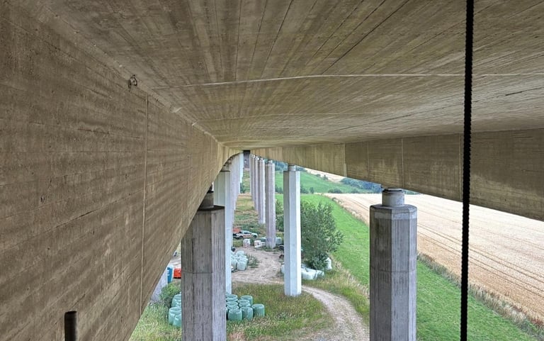 Brücken verbinden – und ihre Sanierung verlangt Erfahrung, Präzision und Augenmaß. Wir gehen dabei mit Respekt an die bestehende Substanz heran und setzen auf moderne Verfahren, um Tragfähigkeit und Sicherheit dauerhaft zu gewährleisten. Unsere Teams sind spezialisiert auf komplexe Bauaufgaben, arbeiten effizient auch unter schwierigen Rahmenbedingungen und sorgen dafür, dass Brücken schnell und zuverlässig wieder fit für die Zukunft werden.