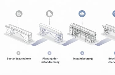 Brücken sind zentrale Elemente der Verkehrsinfrastruktur und erfordern eine fachgerechte Instandsetzung. MAVRIC Hochbau führt Brückensanierungen mit hoher technischer Präzision und Respekt vor der bestehenden Bausubstanz aus. Durch den Einsatz bewährter Verfahren und moderner Bauabläufe sichern wir Tragfähigkeit, Dauerhaftigkeit und Verkehrssicherheit. Die Arbeiten erfolgen effizient und ggf. unter Berücksichtigung laufender Verkehrsbedingungen.