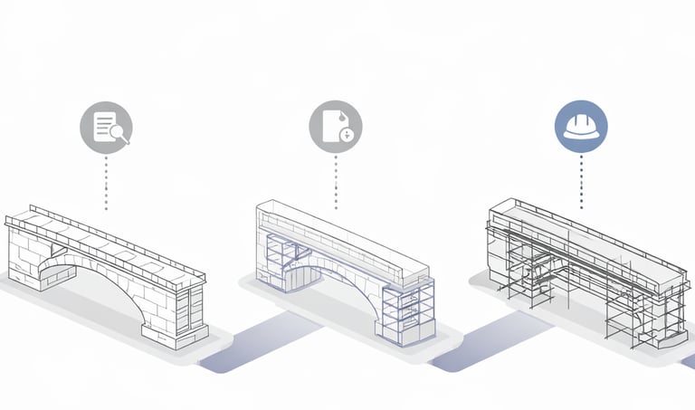 Brücken sind zentrale Elemente der Verkehrsinfrastruktur und erfordern eine fachgerechte Instandsetzung. MAVRIC Hochbau führt Brückensanierungen mit hoher technischer Präzision und Respekt vor der bestehenden Bausubstanz aus. Durch den Einsatz bewährter Verfahren und moderner Bauabläufe sichern wir Tragfähigkeit, Dauerhaftigkeit und Verkehrssicherheit. Die Arbeiten erfolgen effizient und ggf. unter Berücksichtigung laufender Verkehrsbedingungen.